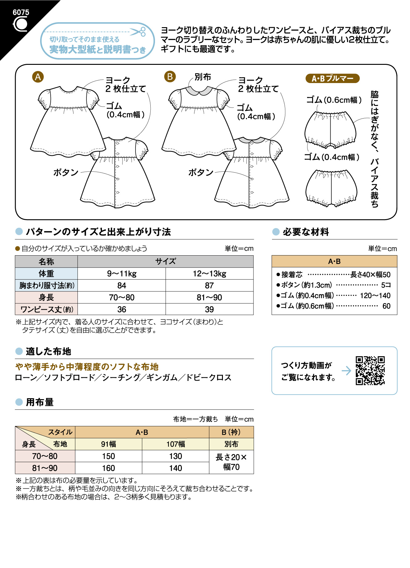ヨークは赤ちゃんの肌に優しい2 枚仕立て。Bは別布の丸衿つき。